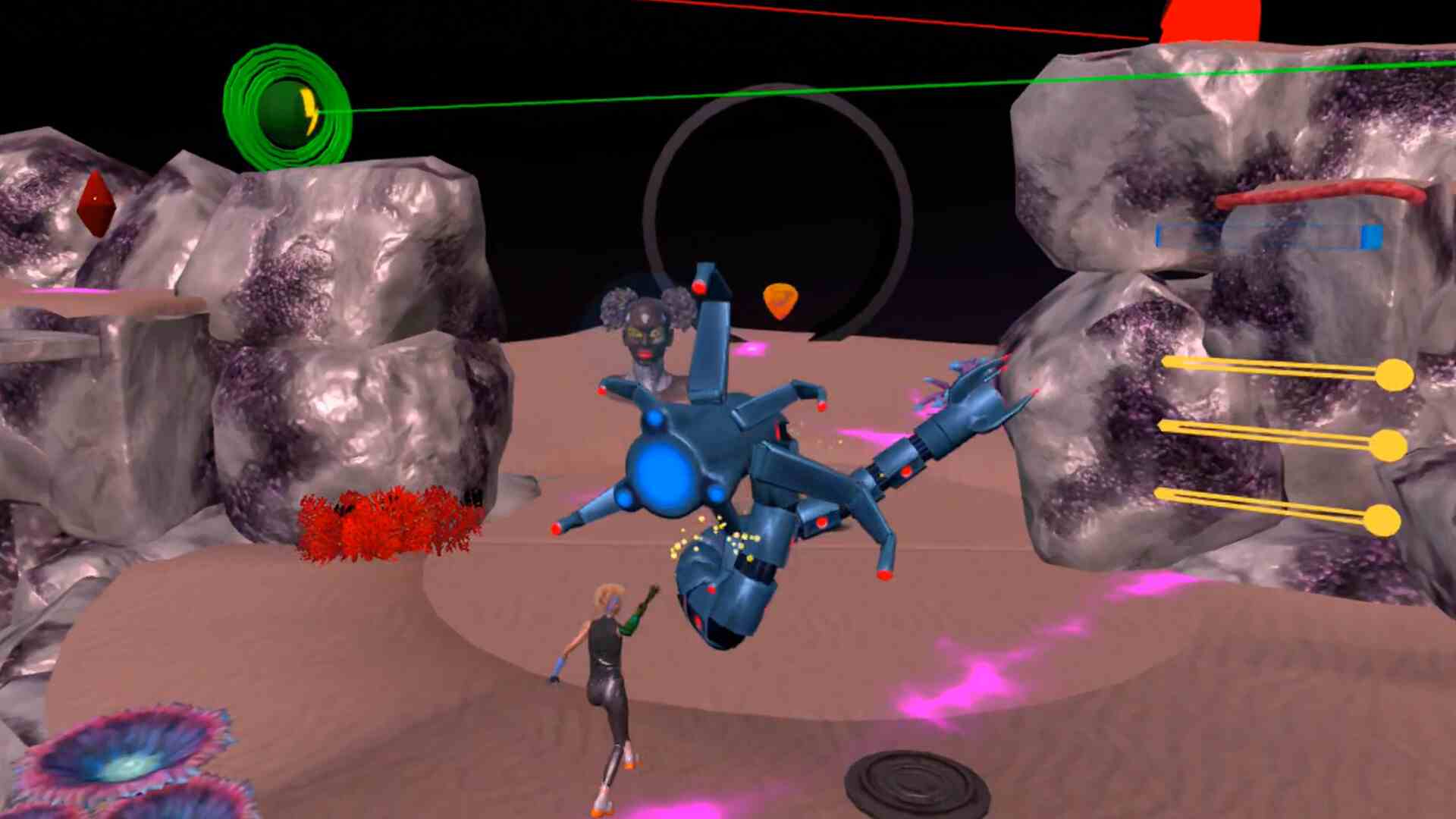 你将装备一只能够适应各种环境(火焰、冰冻、电击、牵引光束)的机械手臂,解开密室逃脱的谜题,在混乱的地形中穿梭,并粉碎敌人。你可以直接进入蕾兹的思维,切换到第一人称视角来解锁她的视角,或者利用她受损的眼睛揭示隐藏的线索,并破除 MgaFusion 旗下企业势力大佬们设下的陷阱。